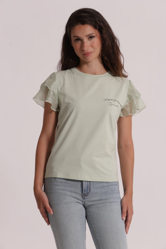 T-SHIRT "KEY TO MY HEART" E MANICHE CON VOLANT