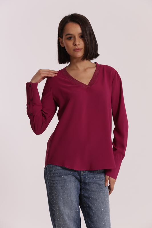 BLUSA SCOLLO A V CON DETTAGLIO SU COLLO