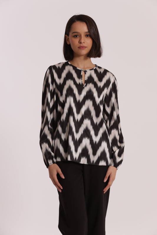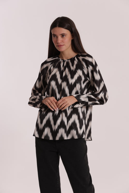 BLUSA CON SCOLLO TONDO FANTASIA CHEVRON