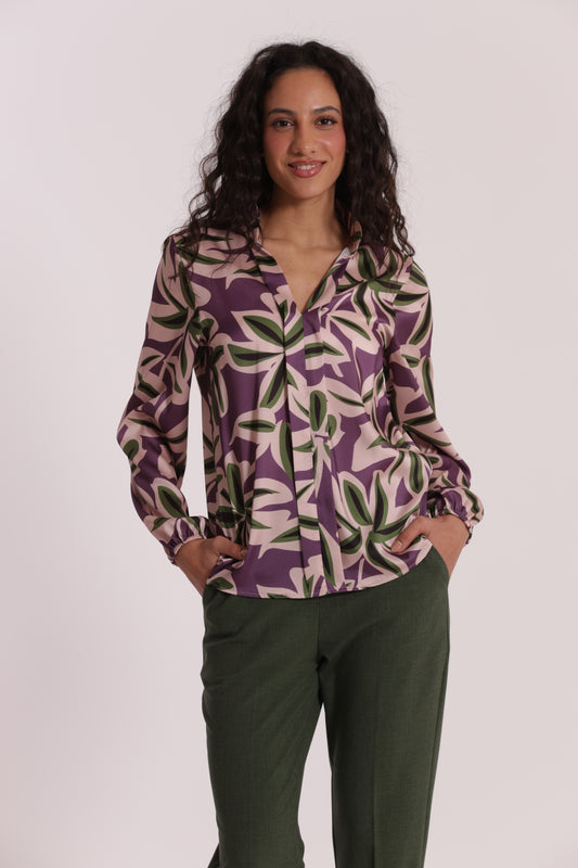 BLUSA SCOLLO A V FANTASIA BOTANICA