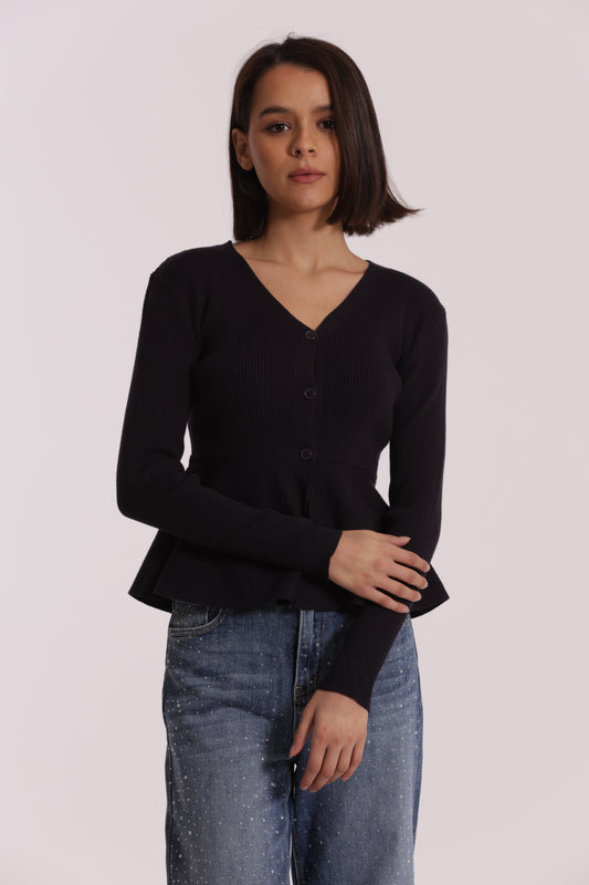 MAGLIA CARDIGAN SVASATO SUL FONDO CON BOTTONI