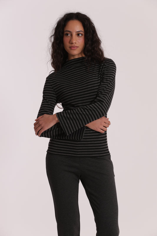 MAGLIA COLLO A VULCANO A RIGHE