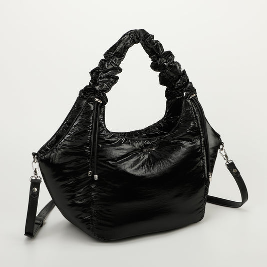 BORSA A SPALLA IN NYLON CON MANICO ARRICCIATO