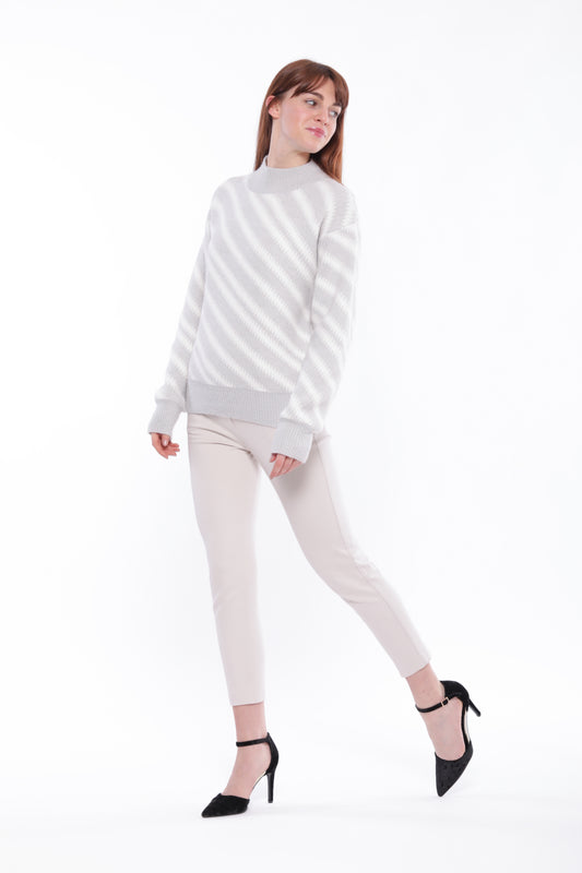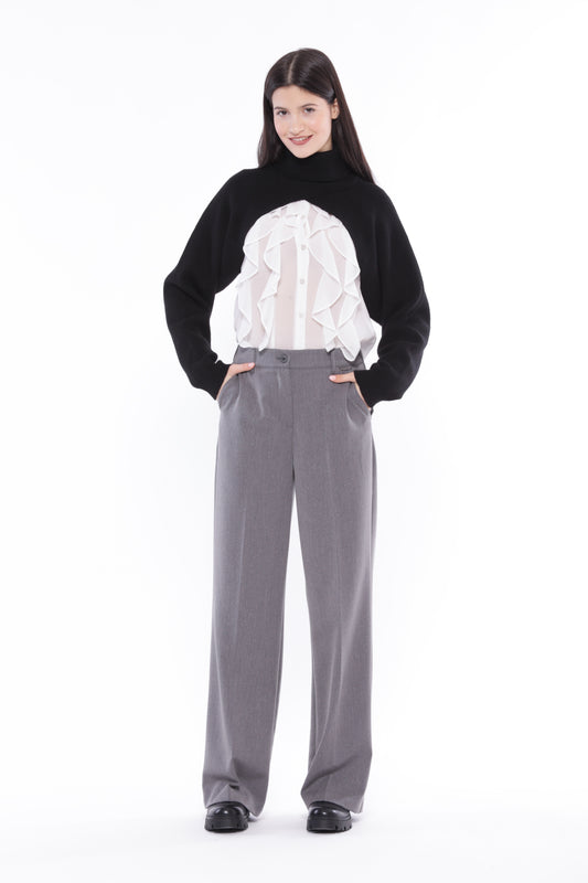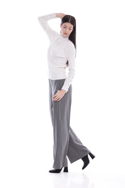 PANTALONE PALAZZO GESSATO CON DETTAGLIO IN RASO