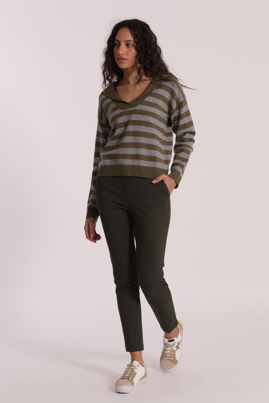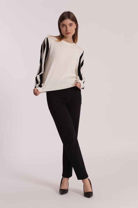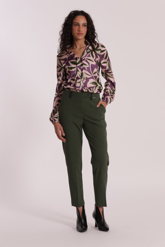 PANTALONE SIGARETTA ELASTICO DIETRO IN TESSUTO FIAMMATO