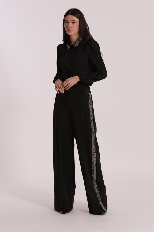 PANTALONE PALAZZO CON PASSAMANERIA RICAMATA