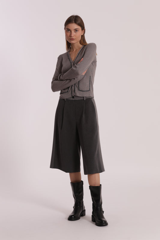 PANTALONE CROPPED TESSUTO SPIGATO DETTAGLI IN SIMIL PELLE