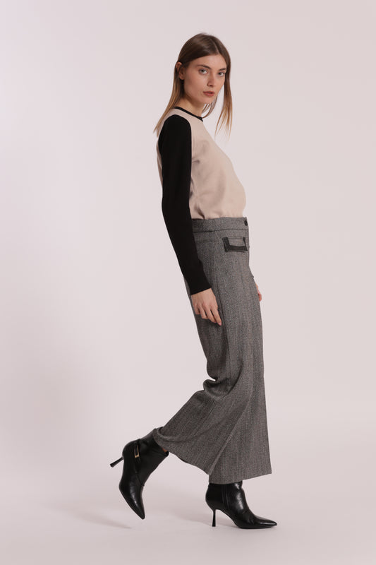 PANTALONE PALAZZO TESSUTO SPIGATO DETTAGLI IN SIMIL PELLE