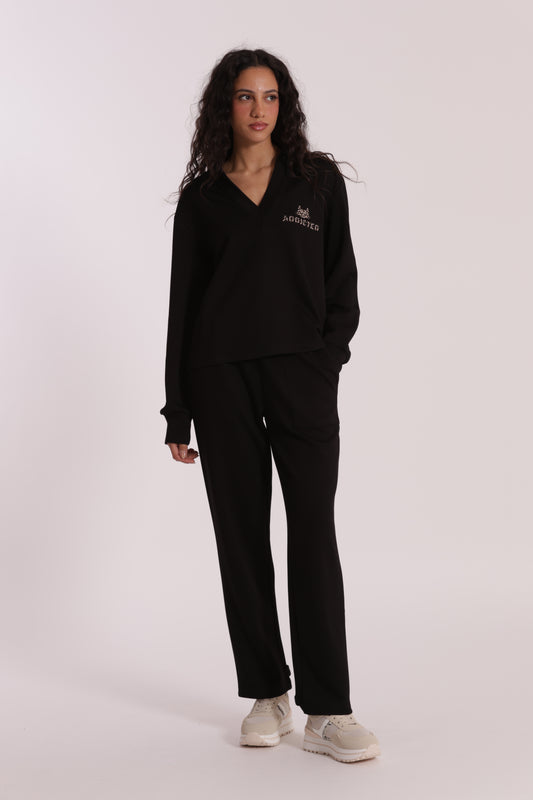 PANTALONE PALAZZO IN NEOPRENE CON PASSAMNERIA
