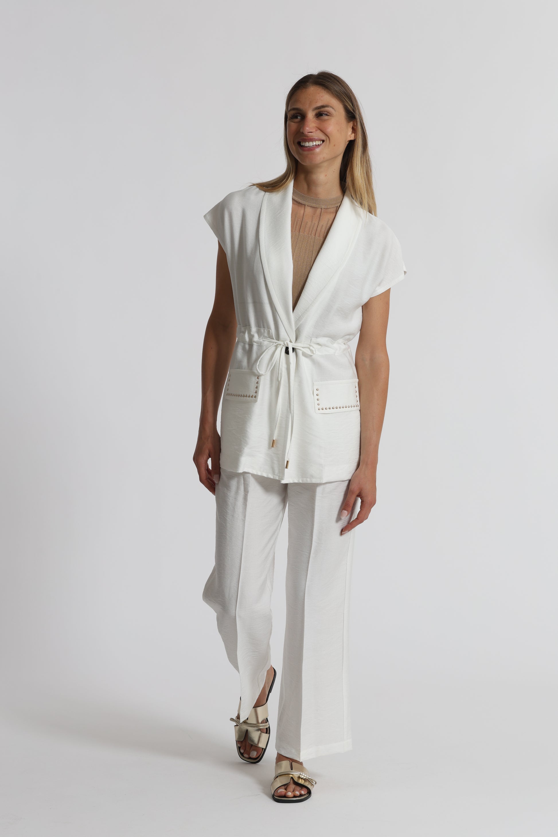 La modella è alta 1.75 CM – vita 60 CM – fianchi 88 CM – busto 80 CM